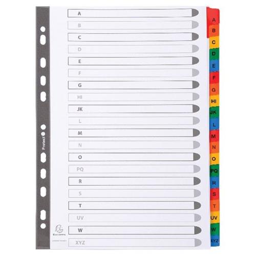 This Exacompta Guildhall A4 index is made from quality 160gsm white card with multi-coloured tabs that are labelled A-Z for quick referencing. The 20 part index is also multi-punched for filing in standard ring binders and lever arch files.