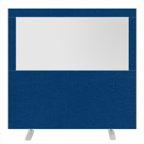 Impulse Plus Clear Half Vision 1500/1600 Floor Free Standing Screen Powder Blue Fabric Light Grey Edges