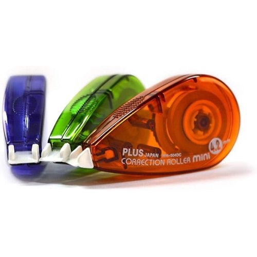 Plus By Pentel Correction Tape Roller Mini 4.2mm x 6m Assorted Colours (Pack 3) 43563
