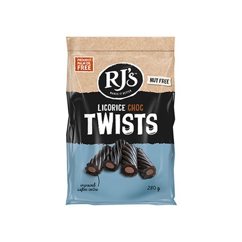 RJ’s Licorice Choc Twists are the finest, tastiest licorice twisted around a smooth and creamy choc centre. Palm oil free. Nut free.